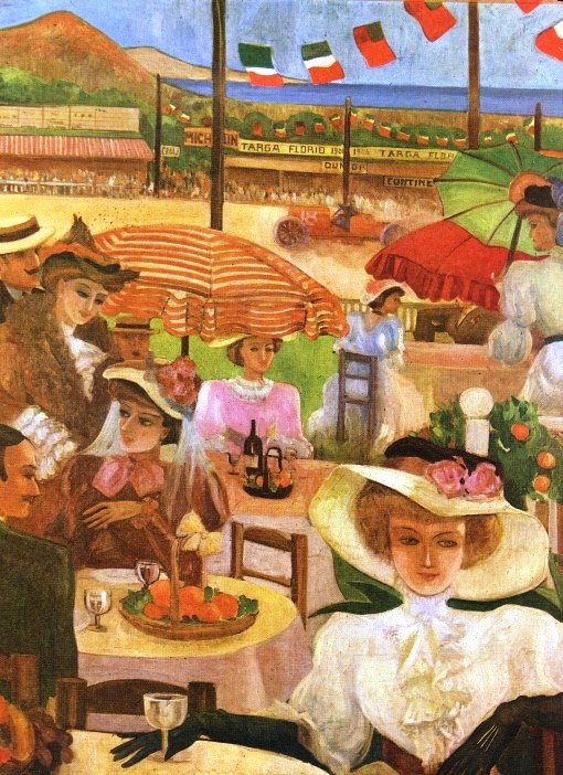 | ... qui in un celebre dipinto di Margareth Bradley, figlia del noto giornalista inglese di AUTOCAR. |