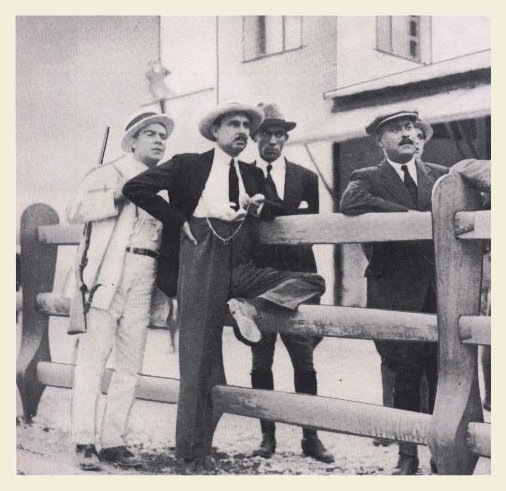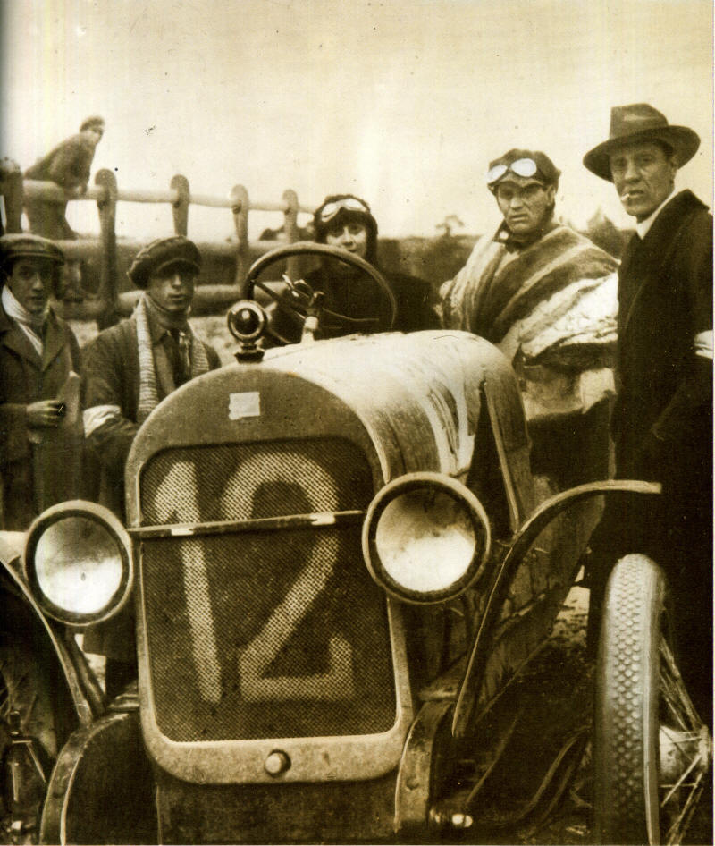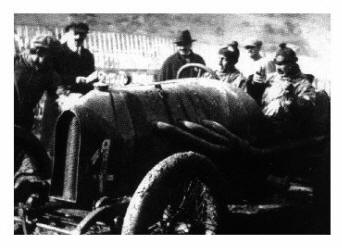 | Florio cronometra 1 tempi di un concorrente durante gli allenamenti che precedono la Targa del 1920. Da notare, gli steccati di protezione che erano formati con una doppia fila di eliche da idrovolante che Vincenzo Florio si era fatto cedere come residuati di guerra dalle officine aeronautiche Ducrot, di Mondello, una delle tante aziende di proprietà dei Florio.