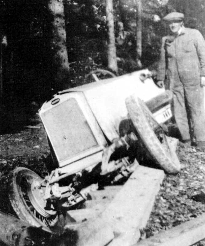 ![]() | ... nella botta si sfascia una tanica piena di benzina e qualche scintilla dallo scappamento accende un rogo. Wagner si ferma, carica il pilota ferito e lo trasporta al più vicino ospedale. Se la caverà. |