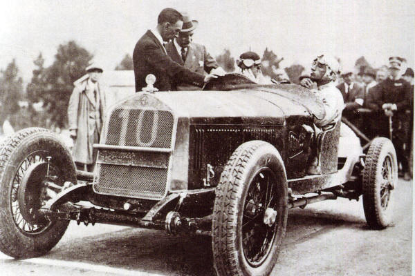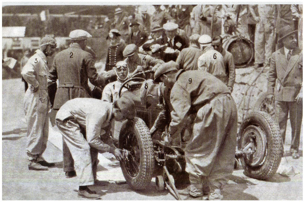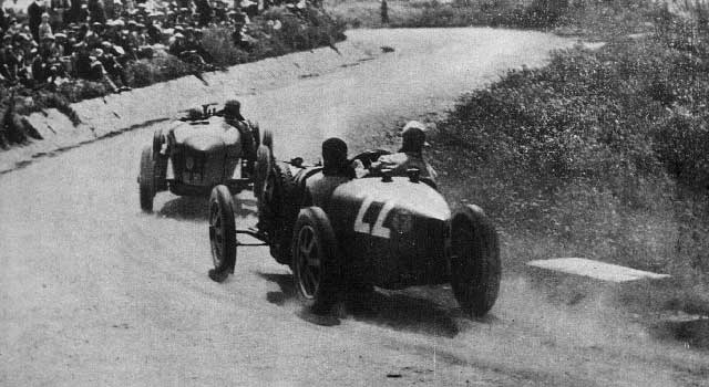 | 1930 Nomi importanti: Campari, Varzi, Nuvolari, Borzacchini. C'è anche Ernesto Maserati su Maserati. Giovanotto, ecco CHIRON che un giorno ritroveremo, esperto di gastronomia, al quiz della televisione. La gara sarà tutta un dialogo, botta e risposta, tra la Bugatti di Chiron e l'Alfa di Varzi. Primo,Varzi, con due minuti di distacco. Ma subito all'infermeria! Deve farsi medicare parecchie dolorose scottature. E' accaduto, in piena corsa, che dall'Alfa di Varzi si sia staccata la ruota di scorta, e la ruota staccandosi ha fatto uno strappo nel serbatoio della benzina. Varzi intuisce, dagli scoppiettii del motore, d'essere quasi in secco. Alla prima stazione di rifornimento afferra una latta di benzina, e nemmeno si ferma. La versa col motore acceso, e la macchina in corsa. Il polso di Varzi è saldo, ma un po' di benzina si sparge e sgocciola sul tubo di scappamento. Attorno alla macchina incominciano a guizzare le fiamme. Varzi fa segno al meccanico di spegnerle a colpi di cuscino. E per fargli spazio, guida con le braccia di traverso, rannicchiato in un angolo. |