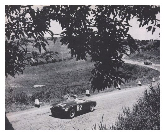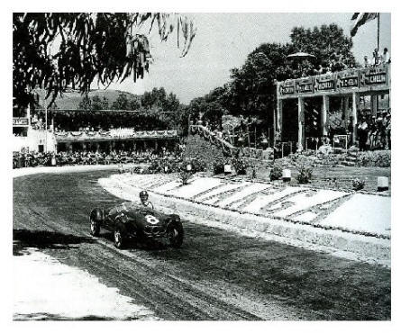 ![]() | Nell' atteso duello Taruffi - Musso prevale la "Volpe d'Argento" Piero Taruffi, qui nel concitato arrivo, su Lancia 3000 alla media record di 89,930 e un chilometro lanciato calcolato sul rettilineo di Bonfornello percorso a 253,521 kmh. |