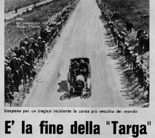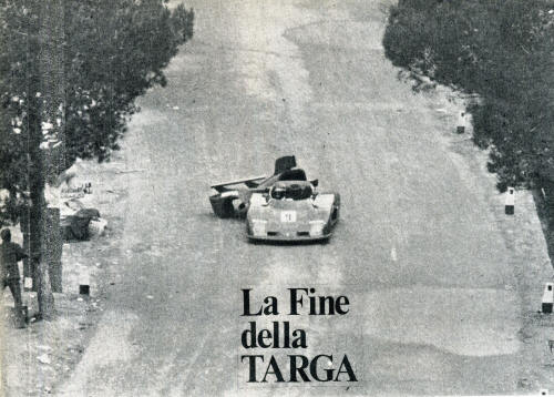 ![]() | Il 15 maggio 1977 si concluse la storia della Targa Florio arrivata alla sua 61° edizione. La gara era prevista sempre sul piccolo circuito Madonita di 72 km da percorrere per otto volte. Ma al quinto giro venne interrotta a causa di un tragico incidente che confermò la pericolosità di una formula ormai superata. La OSELLA del marchigiano Ciuti esperto pilota di gare in salita, dato alla vigilia come uno dei favoriti alla vittoria finale, arrivata nei pressi di Buonfornello perdeva aderenza iniziando una serie di piroette che falciarono un gruppo di tifosi poco accorti chiamati a versare l'ultimo tributo di sangue alla Targa. La classifica venne redatta alla fine del quarto giro, vinse la coppia Restivo - Apache con una Chevron BMW B 36 di 2000 cc. Alla media di 107'140 km/h. Quel tremendo incidente chiuse definitivamente la mitica Targa Florio, anche se negl'anni successivi il nome Targa Florio venne accordato al già esistente Rally di Sicilia o a gare rievocative. |