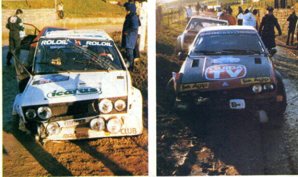 | ED ECCO DOCUMENTATO DA AUTOSPRINT IL RITIRO DI VUDAFIERI E PREGLIASCO COME gli appassionati di Rallies certamente sapranno, durante le ultime 'battute della Targa [Florio i due leaders della corsa, Vudafieri con la 131 e Pregliasco con l'Alfetta Turbo erano separati di pochissimi secondi quando entrambi sono finiti fuori in maniera rovinosa nella stessa curva. Sul posto erano presenti anche due nostri lettori (ed i lettori continuano ad essere sempre i più attenti collaboratori di AUTOSPRINT) che hanno documentato con le immagini e con il testo che segue e che ci hanno fatto pervenire la dinamica sia dell'incidente ed il suo « caldo » post-accaduto. Ci scrivono allora GIANFRANCO CIARAMITARO e NELLO GRASSI: « Dopo il passaggio di Pasetti, giunge Vudafieri che (sul fondo viscido per la terra sull'asfalto n.d.r.) scivola ed urta di coda contro il muro che si vede nella foto in alto. |