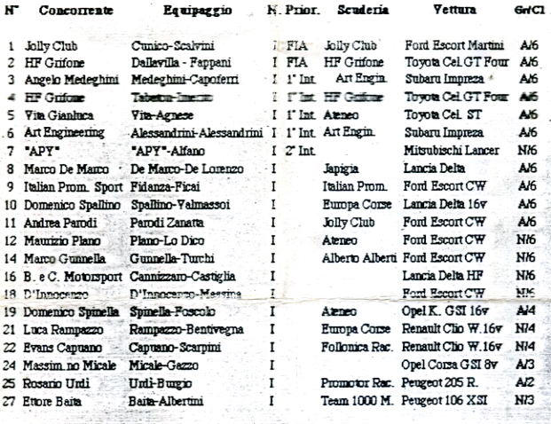| 15 | Stefano Cannizzaro - Castiglia (LANCIA Delta HF) |