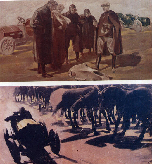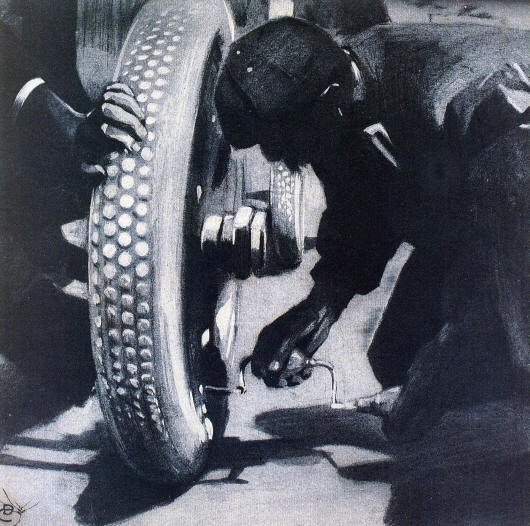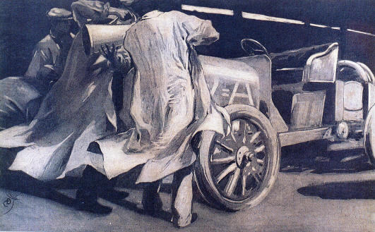 1907 D. Cambellotti "Cambio di ruote" Tempera per RAPIDITAS