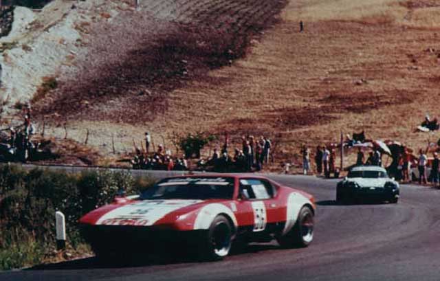 | La De Tomaso Pantera motorizzata con un Ford da 5,8 cc. di Alessandro Pesenti Rossi e «Alval» (Alvaro Valtellina) si piazza al 13^ posto nell'assoluto. |
