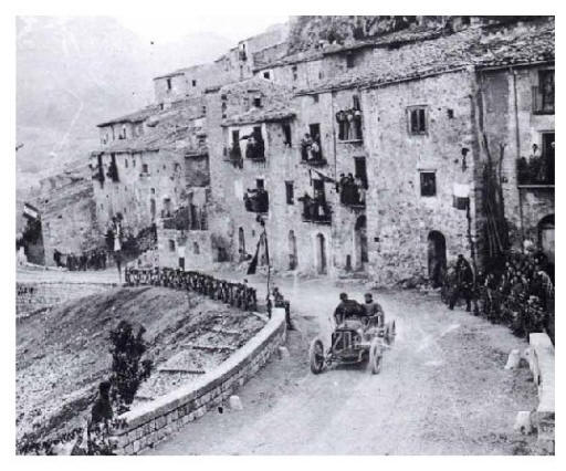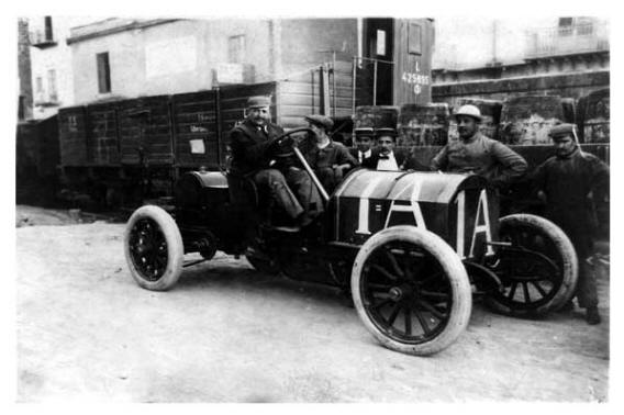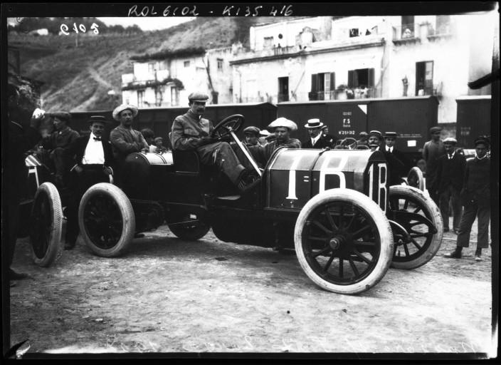| 3^ TARGA FLORIO 1908 La FIAT di Vincenzo Lancia al pesage, poi seconda assoluta in gara, e ... |