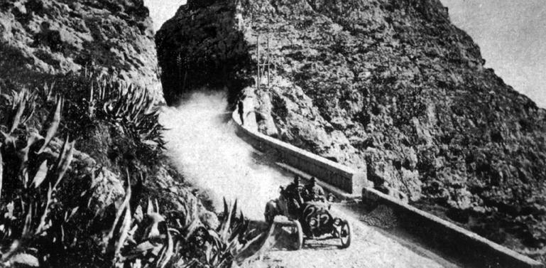 | 7^ TARGA FLORIO - 1^ GIRO DI SICILIA del 1912 la FIAT di ZAVAGNO impegnata sul percorso, sarà poi costretta al ritiro. |