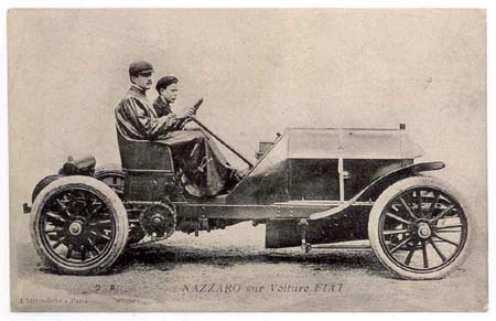 | La FIAT 28/40 HP "tipo Targa Florio" con motore di oltre sette litri di cilindrata di Felice NAZZARO, popolarissimo in Sicilia per essere stato l'autista di Vincenzo Florio, e del suo meccanico Antonio Fagnano, dominatori della 2^ Targa Florio del 1907. |