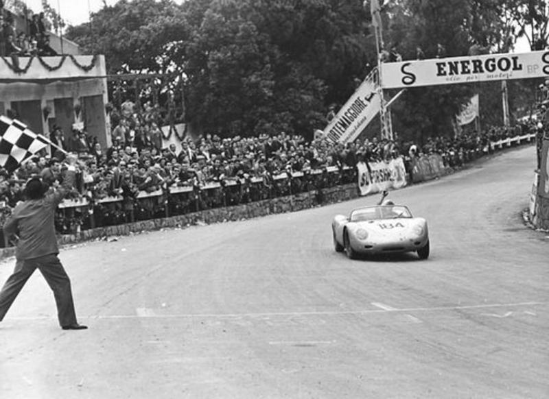 | 44^ TARGA FLORIO 8 maggio 1960 Il vittorioso arrivo della PORSCHE 718 RS 60 di HANS HERRMANN e JOACKIM BONNIER.