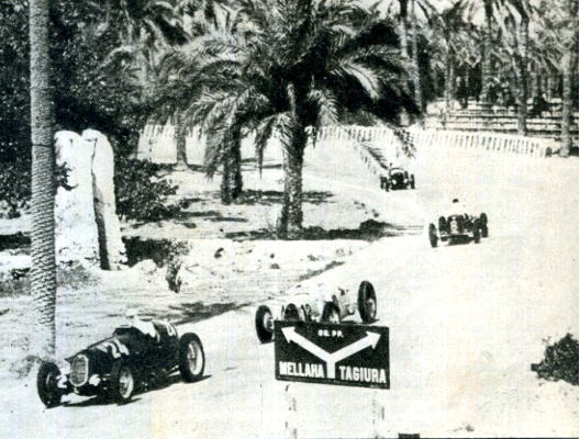![]() | 1938. Non c'è soltanto Monza in Italia a fare da richiamo per le sfide automobilistiche. Numerosi sono i circuiti cittadini. Ecco quello di Pescara dove partono in prima fila (da sinistra) Nuvolari su Auto Union e Lang su Mercedes. Vince Caracciola |
