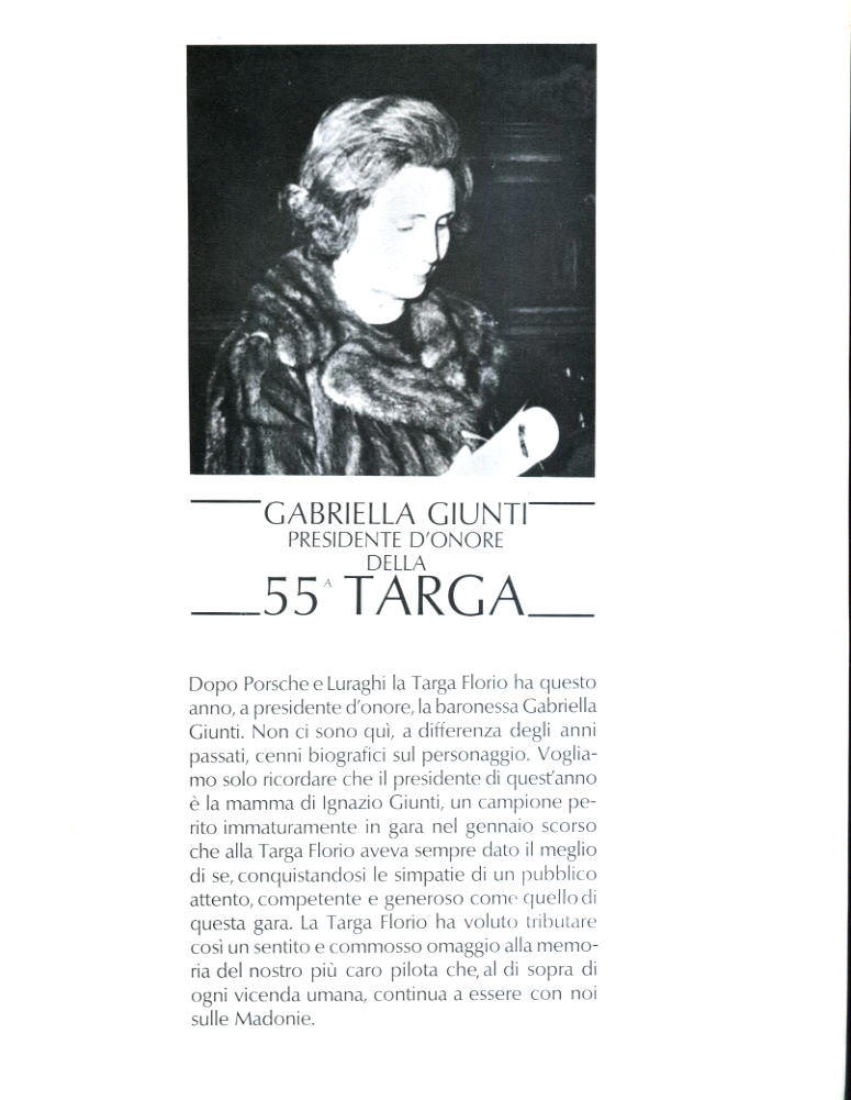 | ... un' altra è dedicata alla mamma, la baronessa Gabriella Giunti, Presidente d'onore della 55 Targa Florio. |