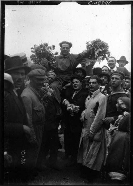 | 12^ TARGA FLORIO 29 maggio 1921 Vince il CONTE GIULIO MASETTI, eccolo portato in trionfo dal "popolo Madonita" che lo idolatrava. |