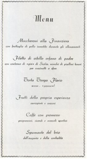 L'originale menù per festeggiare il vincitore della Targa