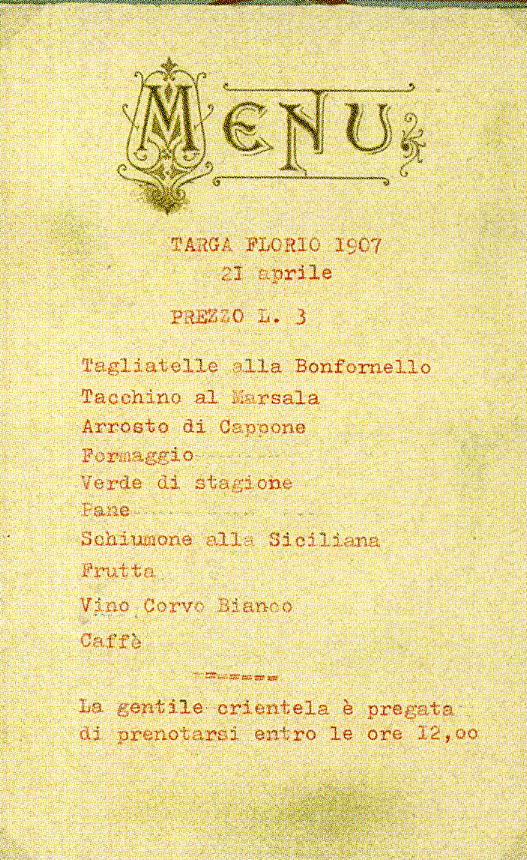 Ecco il menù offerto dal ristorante posto alle tribune per l'edizione del 1907 della