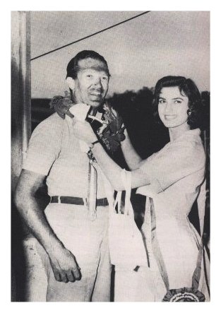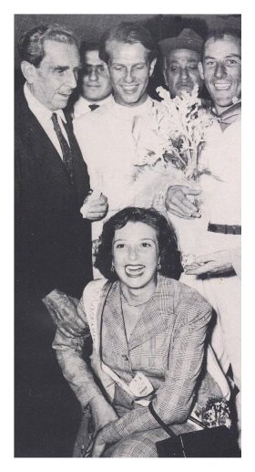 Compare per la prima volta una nuova figura MISS TARGA eccola con Florio e i vincitori STIRLING MOSS e PETER COLLINS