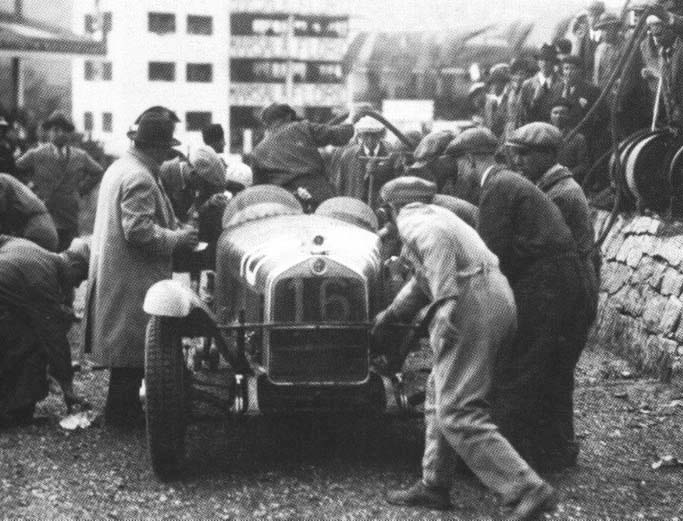 | 24^ TARGA FLORIO 1933 BRIVIO ai box con la sua ALFA ROMEO 8C 2300 |