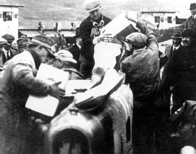 | 14^ TARGA FLORIO 15 aprile 1923 L' ALFA ROMEO RLTF del Conte GIULIO MASETTI al rifornimento . |