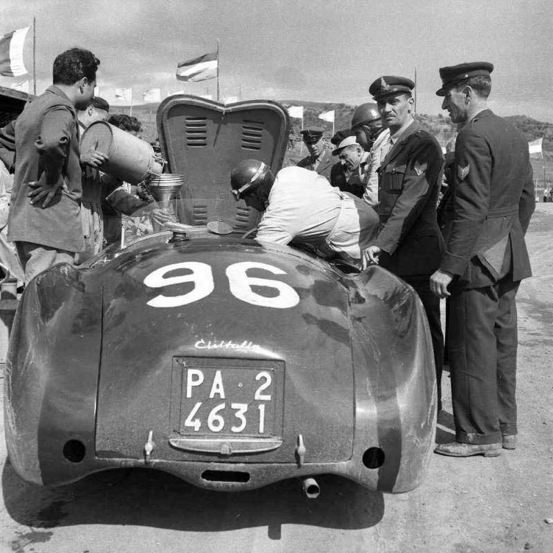 ![]() | 37^ TARGA FLORIO 14 maggio 1953 Pit Stop sotto occhi vigili di Forze dell'ordine e Commissari per la CISITALIA di BRUNI costretto poi al ritiro |