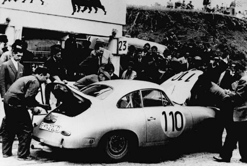 | 44^ TARGA FLORIO 8 maggio 1960 La PORSCHE 356 B Carrera/1,6 di HUSCHKE von Hanstein e Antonio Pucci ai box. |