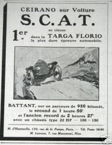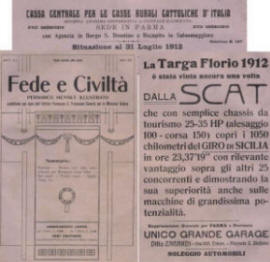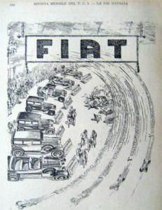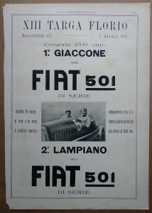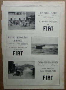 | 1923. L'ottimo sesto assoluto del Marchese Giuseppe De Seta alla Targa !^ di categoria è ben sfruttato dalla FIAT nella sua pubblicità.. | ||
