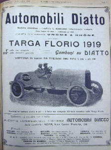 | 1919 L'ITALA reclamizza così il suo secondo posto alla TARGA FLORIO. | ![]() | 1919 La DIATTO risponde con il terzo posto nell'assoluto |