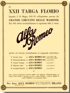 | 1931 22^ Targa Florio tocca all'Alfa Romeo pubblicizzare la presenza nei primi sei posti di ben cinque vetture della casa del biscione.