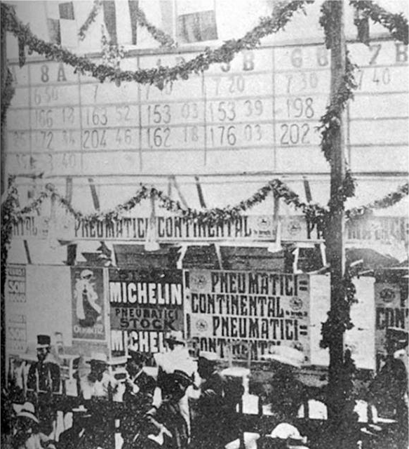 | 3^ TARGA FLORIO 18 maggio 1908 L'imponente tabellone dei tempi. |