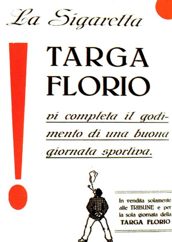 Pubblicità per la sigaretta TARGA FLORIO in vendita alle tribune nel 1932.