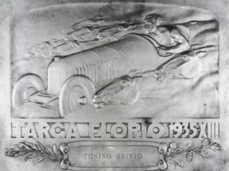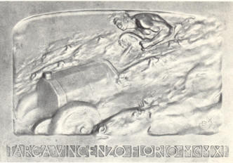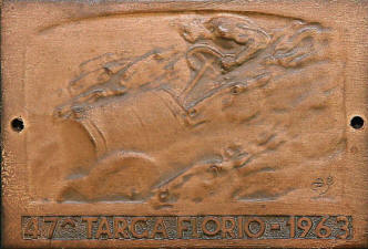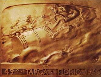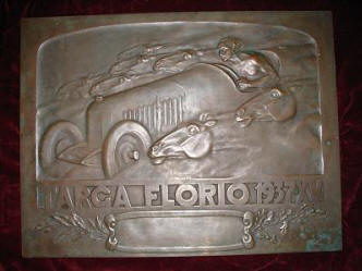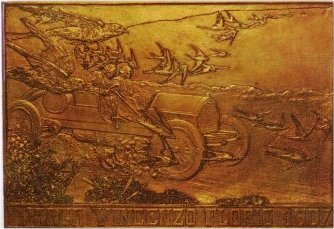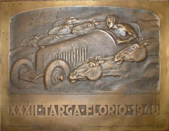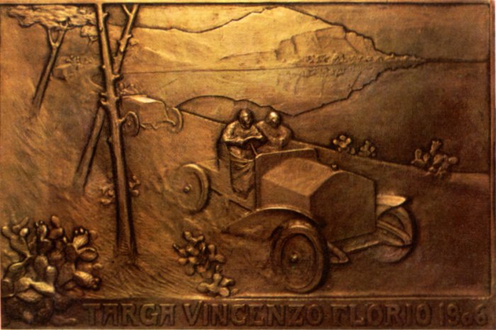 ![]() | Targa Florio, 1908 cm 18x23 bronzo, fusione del 1920 In basso a destra: CD e spiga in basso: Targa Vincenzo Florio MCMXX Coll. Conchita AIROLDI |