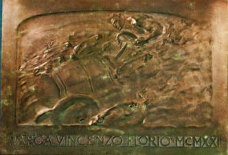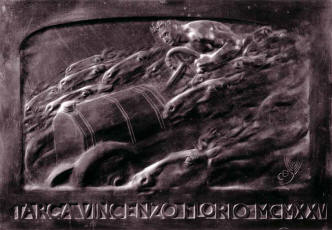 ![]() | Targa Florio, 1908 cm 18x23 gesso (originale custodito nello studio di Cambellotti per la fusione del Trofeo Florio) In basso a destra: CD e spiga Archivio Cambellotti, Roma |