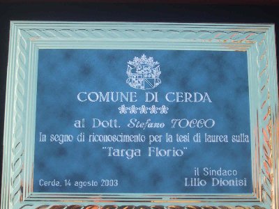 Nel 2003 STEFANO TOCCO si è laureato discutendo una tesi sulla Targa Florio, il comune di Cerda a ricordo gli ha donato una targa.