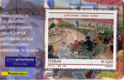 Tessera Filatelica emessa il 6/5/2006 dalle POSTE ITALIANE per il francobollo celebrativo del centenario della Targa Florio.