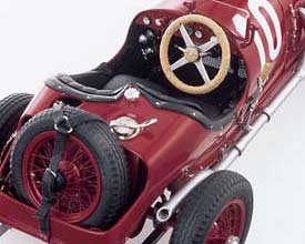 ![]() | Il primato per la scala 1/18 va alla CMC che riproduce la MERCEDES Tipo Indy vincitrice della 15^Targa Florio e della 7^Coppa Florio del 1924 condotta da Christian Werner, supportato dal suo meccanico Karl SAILER,che stoicamente manteneva il serbatoio di gas a pompa manuale sotto pressione e contemporaneamente provvedeva al grasso di lubrificazione. Una curiosità perché dipinta di un luminoso rosso italiano e non bianca come tipico delle auto di corsa tedesche di quel tempo, Voci del tempo ci dicono che la Mercedes stava cercando di prevenire gli attacchi (tipico il lancio di pietre) da parte dei tifosi siciliani a detta dei tedeschi dotati di sangue caldo. | |