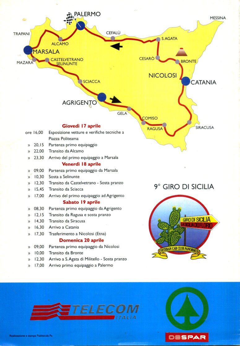 | ELENCO ISCRITTI N. CONCORRENTE PROVENIENZA STATO VETTURA ANN0 CILIND. 002 Vives — Vives Draguignan F Bugatti 37 1926 1500 004 Portoghese-Portoghese Vicenza I Salmson rally 1929 1500 006 Russo V. — Russo G. Palermo I Fiat 5()8 CS Balilla 1935 1000 008 DeCoster - DeCoster Paris ‘ F Bugatti 57 roadster 1936 3300 010 Giordano-Giordano Cannes F Alfa Romeo 2300 cabriolet 1937 2300 012 Sage — X Montlery F Alvis sport 1937 4300 014 Portoghese—Stabile Trapani I Fiat 500 A 1939 500 016 Di Gese - Attisani Bari I Bianchi S9 1939 1500 018 Meyer - Meyer Bielefeld D BMW 328 Beutler 1939 2000 020 Roquet - Roquet Montecarlo MC Bugatti 57 S Aravis 1939 3300 022 Scotto — Ferrante Roma G I Lancia Aprilia 1946 1500 024 Costa - Piscitello Trapani I Fiat 500 B 1948 500 026 Ciriminna - Ingoglia Palermo I Fiat 1 100 cabriolet 1948 1100 028 Lombardo - X Palermo I Siata Sport 1948 750 030 Alessi - Cappuccio Messina I Fiat 1100 Sport barchetta 1949 1100 032 Philippe - Mathe Paris F HWM Jaguar 1949 2000 034 Durante - Calise Palermo I Fiat 500 C " 1950 500 036 Pellegrino - Accardo Trapani 1 Fiat 500 C 1950 500 038 Di Malo - Damiata Palermo 1 Fiat 1 100 E 1950 1100 040 Magnano - X Catania I MG TF 1950 1250 042 Marchi - Marchi Verona I Healey Silverstone 1950 2450 044 Sciacca — Previti Messina I Lancia Ardea · 1951 900 046 DeSimone — DeSimone Palermo 1 Lancia Ardea 1952 900 048 L`Abbate — Pernicano Caltanissetta 1 Fiat 1 100 Monviso Stella Alpina 1952 1 100 050 Lombardo - Lombardo Palermo I Fiat Lombardo Sport 1953 1 1()0 052 Galli—Faccenda Roma I Siata 300 BC sport barchetta 1953 1 1()0 054 Piraino · Piraino Palermo I Alfa Romeo 1900 1952 1900 056 Tenconi - Bandera Milano 1 Fiat 8V 1952 2000 058 Chiodi—Chiodi Roma 1 Lancia Aurelia B 22 1953 2000 060 Becchina—Amabile Agrigento 1 Jaguar XK 120 FHC 1953 3500 062 Russo S. - Russo V. Palermo 1 Renault 4 CV 1954 750 064 Rossi — X. Palermo I Lancia Appia 1954 1 100 066 Musumeci — Maio1o Palermo 1 Maserati A6 GCS 1955 2000 068 Auriault — X Orches F Austin Healey 100/4 BN1 1955 2600 070 Staniaszek — Scianna Romford GB Jaguar D type » 1955 380() 072 Ruggio -Lo Nardo Palermo 1 Fiat 1 100 TV spider 1956 1 100 074 Ferracin - Pianca Treviso I Porsche 550 RS 1956 1500 076 Fiorello —X Amsterdam NL Alfa Romeo 1900 super 1956 1900 078 Margiotta — Margiotta Palermo I Alfa Romeo 1900 super 1956 1900 080 Lippmann - Magnone Guatemala GUA AC Bristol 1956 2000 082 Pugliesi—Pugliesi Trapani 1 Austin Healey 1()()/4 1956 2660 084 Cornu - Cornu Paris F Austin A 35 1957 1000 086 Cecon - Bettini Roma 1 Porsche 356 A cabrio T1 1957 1500 088 Fazio — Lipari Trapani 1 MG A — 1957 1500 090 Bonechi - Magi Firenze A I MG A 1957 1600 092 Vetri - X L Palermo I Lancia Aurelia B20 1957 2500 094 Distler - X Putzbrunn D Mercedes 300 SLS 1957 3()00 096 Khun -X Bad Homburg D Mercedes 300 SL roadster 1957 3000 098 Kleiss1—X Polling A D Mercedes 300 SLS 1957 3000 100 Lipari — Lipari Trapani 1 Alfa Romeo Giulietta berlina 1958 1300 102 Pelella - Molinari Agrigento 1 Porsche 356 A 1958 1600 104 Longo - Manuelli Roma 1 Lancia Aurelia B 24 1958 2500 106 Godelewicz - Godelewicz Munchen D Mercedes 300 SL roadster 1958 3000 108 Cutore — Mancuso Enna 1 · Alfa Romeo Giulietta T1 1959 1300 110 Di Paola — Di Guardo Catania 1 Mercedes 190 S1 1959 1900 1 12 Ragusa —X Palermo 1 Osca F 372 1958 1 10() 1 14 Guerin - Guerin Paris F Lancia Flaminia SZ 1959 2500 1 16 Violante - Calligaris Reggio Calabria 1 Lancia Flaminia SZ 1959 2500 1 18 Scarrozza — Agostini Verona 1 Mercedes 190 SL 1960 1900 120 Fi1ippi — Giordano Trapani 1 Triumph TR3A 1960 2000 122 X—X X —X 124 Zweifler - Kattner Munchen D Ferrari 250 California 1960 3000 126 Portoghese - Rubinie Trapani I Lancia Appia coupè 1961 1 100 128 Caravello — Caravello Palermo I Alfa Romeo Giulietta T.I. 1961 1300 13() Ga1lo—Calandruccio Caltanissetta 1 Alfa Romeo Giulietta sprint 1961 1300 132 Scalia — Di Bella Catania 1 MG A 1961 1600 134 Barbato — Scarpellini Bergamo I Alfa Romeo 2000 spider 1961 20()0 136 Uccheddu — Mastrangeli Firenze - I Alfa Romeo 2000 sprint 1961 2()00 138 Lima — Ariosto Caltanissetta I Alfa Romeo Giulietta SS 1962 1300 140 Sa1vaggio — Giannone Caltanissetta I Porsche 356 B 1962 _ l6()() 142 X—X X — X 144 Cudini — Cudini Auvers Sur Oise F Jaguar E lightweith . 1962 3800 146 La Rosa — Machì Palermo I Fiat 1200 cabriolet 1963 1200 148 Pelz — Pelz Trento 1 Alfa Romeo Giulia spider 1963 1600 150 Tabucchi — Nesti Pistoia 1 Alfa Romeo Giulia TZ 1 1963 l600 152 Insalaco -X Caltanissetta 1 Alfa Romeo 2600 sprint 1963 2600 154 Petit — Tassin Chennevieres F AC Cobra Mk II 1963 4700 156 Leanza — Murabito Catania 1 Porsche 356 C 1964 1600 158 Peche - Cain Les Charmes F Porsche 356 1964 160() 160 Veneziano—Cottone Palermo 1 Porsche 356 C 1964 1600 162 Consoli—Consoli Catania I Lancia Flavia coupè 1964 1800 164 Auccello — Auccello Palermo I Lancia Flavia coupè 1964 1800 166 Spampinato — Ferrara Palermo I Daimler V 8 1964 2500 168 Bretterklieber — X Salzburg A Mercedes 300 SL roadster 1964 3000 170 Hartmann — Ricci Schluchtern CH Ferrari 275 GTS · 1964 3400 172 Rotundo — Riva Firenze I Maserati Mistral spider 1964 3500 174 Marguin — Cain Vannes F Jaguar E type 1964 3800 176 Giaconia — Giaconia Palermo I Ferrari 330 GT 1964 4000 178 Peano - Furlan Torino I Ferrari 330 GT 1964 4000 180 Paraschiv - Meo Bucarest RO Lancia Fulvia coupè 1965 1200 182 Sartori — Danese Verona I Porsche 356 Sc 1965 1600 184 Spinetti - Statelli Pistoia I Alfa Romeo Giulia TZ 2 1965 1600 186 Paoletti - X Firenze I Bizzarrini 538 Duca D`Aosta 1966 5300 188 Ferri — Marengon Roma I Bizzarrini GT Europa . 1967 1900 190 Magni — Anghileri Roma I Jaguar 340 1967 3400 ` 192 Tayssedre — Van Lith Paris F Ford Mustang 1967 4700 194 Jullien -X Paris F Ford Mustang cabriolet 1967 4700 196 Guagliardo — X Palermo I Ferrari Dino 206 GT 1968 2000 198 Pavone-X Palermo ' I Porsche 91 1 S 1969 2